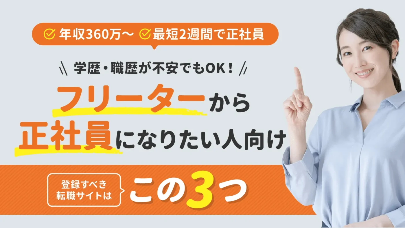 職歴ゼロ・未経験・学歴不安でも、最短2週間で正社員になれる!正社員就職のプロが徹底サポート!